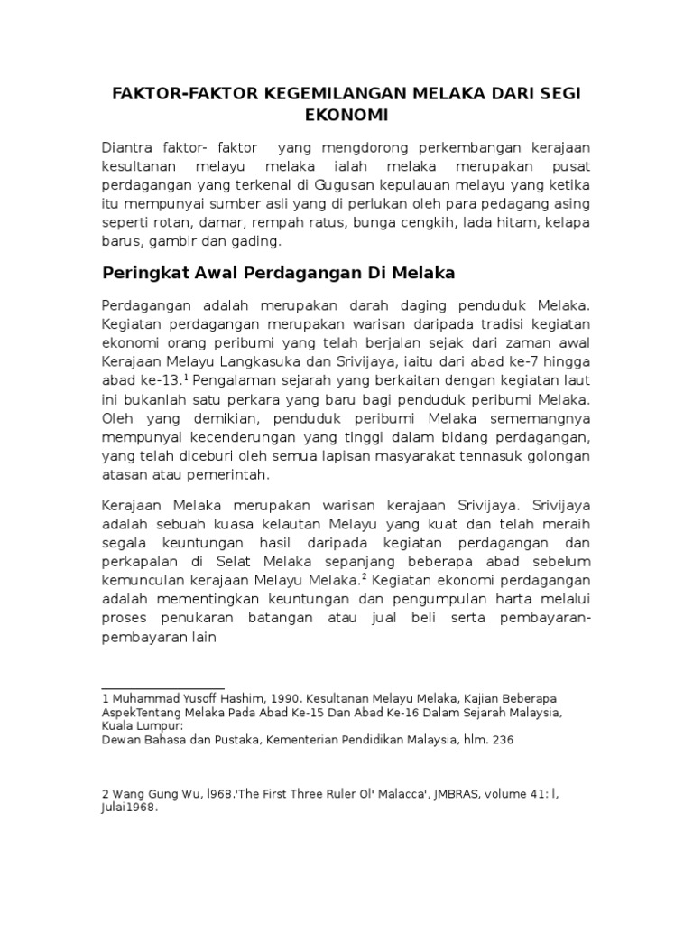 Faktor Kegemilagan Melaka Faktor Ekonomi Pdf